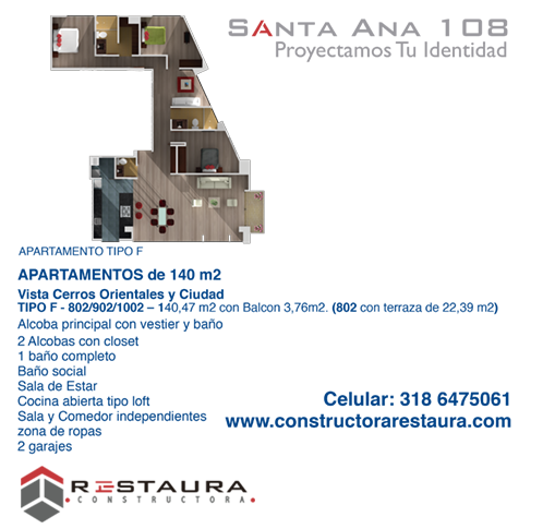 Vista Cerros Orientales y Ciudad 140,47 m2