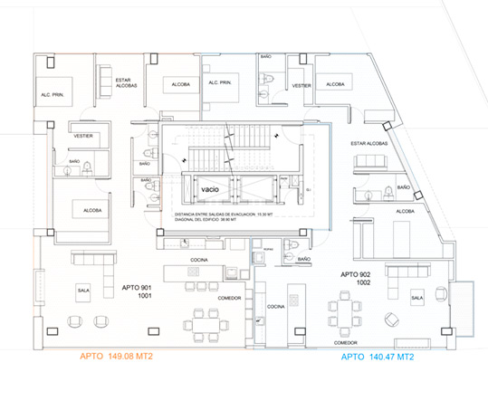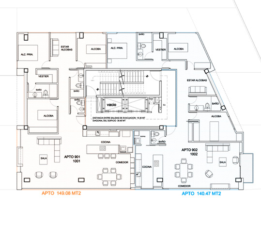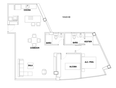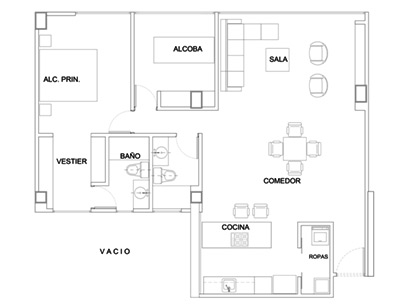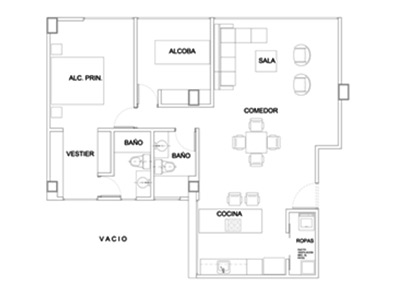 Alcoba principal con vestier y baño